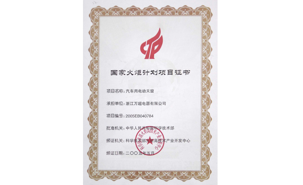 2005年國家火炬計劃項目證書